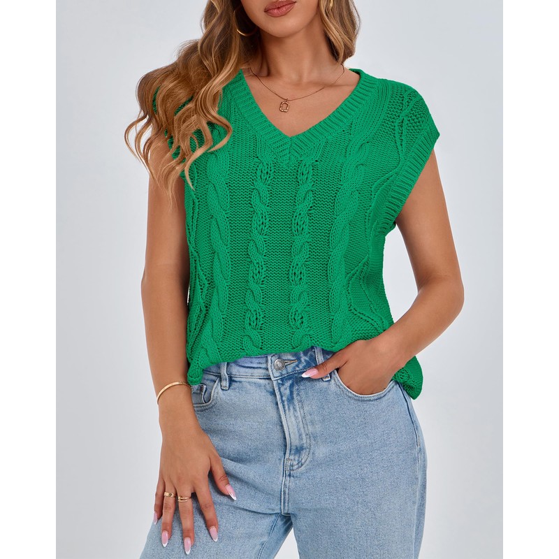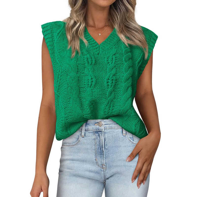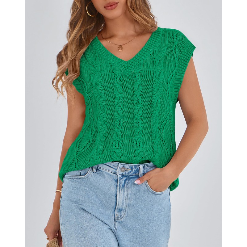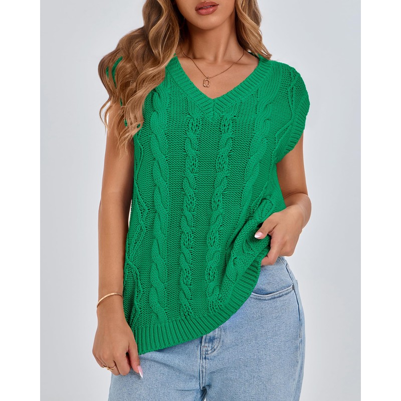BTFBM Womens Oversized Sweater Vest 2025 Summer V Neck Casual Sleeveless Sweaters Loose Cable Knit Pullover Tops(Green, Large)