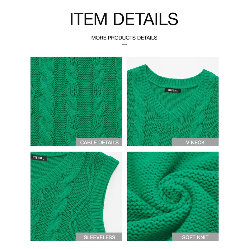- DESIGNS: This Cable Sweater Vest Features a Sleeveless Cut, Timeless V-Neckline Adds a Touch Of Sophistication. The Cable Knit Texture Creating a Visually Appealing And Cozy Piece