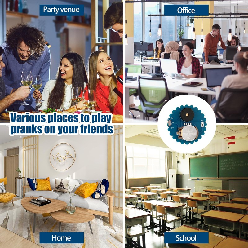 - Easy to hide: the prank noise maker measures about 4.8 x 4.8 x 1 cm. Small and easy to carry, suitable for home, office, school, party venues, etc.