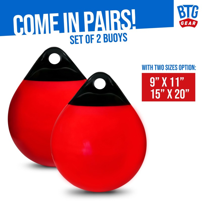 BTG GEAR Set of 2 Pack 9" x 11" Inflatable Vinyl Round Boat Fenders Bumpers Mooring Buoys for Docking/Fishing/Crab/etc (Red and Black)