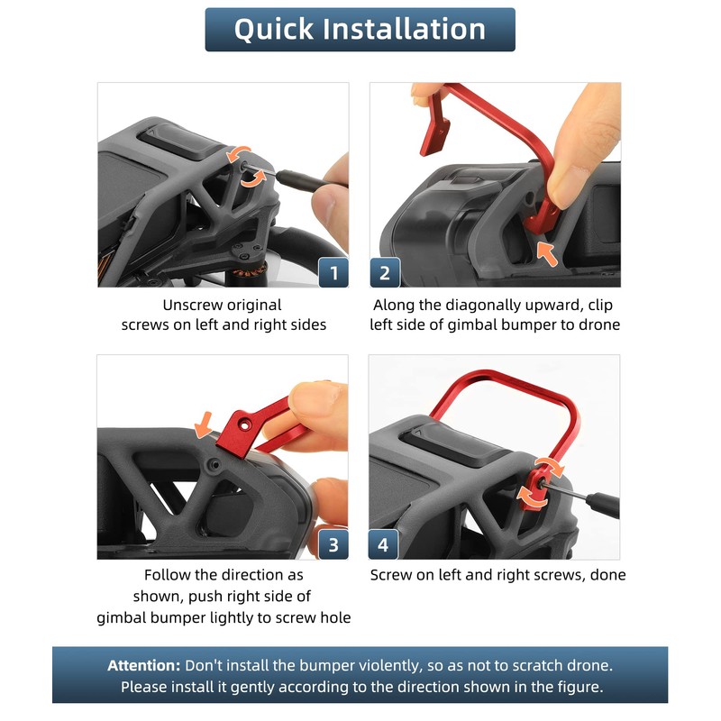 - Don't affect gimbal protector, you don't need to remove the gimbal bumper once you install it on drone