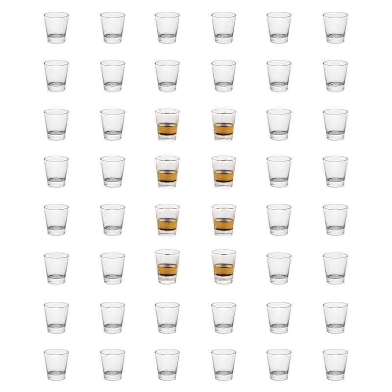 - Stock up on shot glasses in bulk with this set of 48, ensuring you have plenty on hand for your next event. These glass shot glasses are versatile and perfect for serving small shots or measuring out ingredients for cocktails.