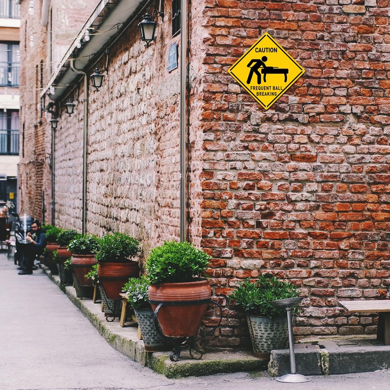 BTHUKO Caution Frequent Ball Breaking 12" x 12" Funny Tin Road Sign, Pool Billiards Game Room 8 Ball Player Pub Tavern Home Bar Decor