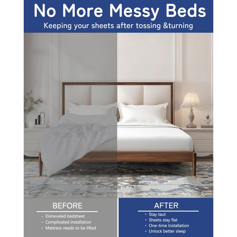 - Secure & Wrinkle-Free Sheets All Night: Eliminate sheet slippage and wrinkles with our fitted sheet holders, ensuring a clean and comfortable night's sleep without constant adjustments.
