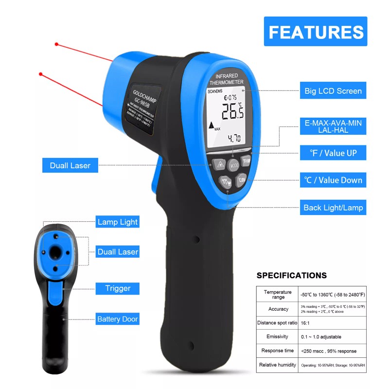 Non-Contact Thermometer Type | Laser Infrared Thermometer |