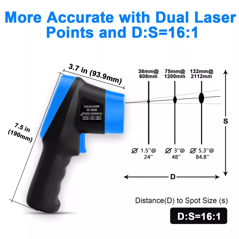 Distance-to-Spot Ratio: 16:1 (Measure small targets from a safe distance)