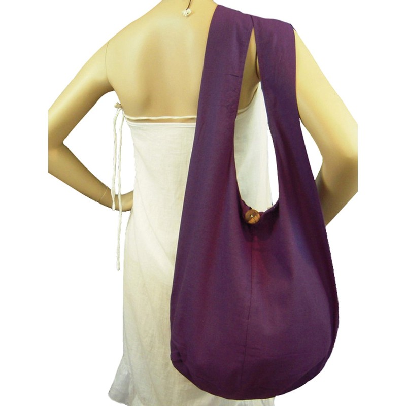 BTP! Thai Monk Buddha Cotton Sling Crossbody Messenger Bag Shlouder Purse Hippie Hobo Medium (Eggplant M5)