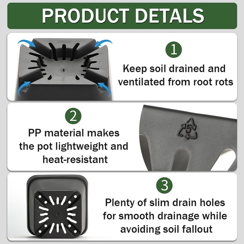 - Durable Nursery Pots: These small pots are made of flexible PP material, this make them lightweight and heat-resistant, less likely to crack or break
