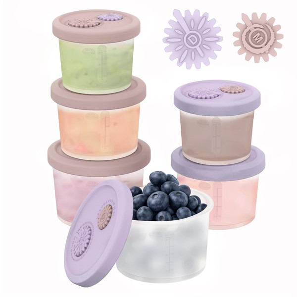 btrfe Reusable Silicone Baby Food Containers with Date-Tracking Lids | 6-Pack...