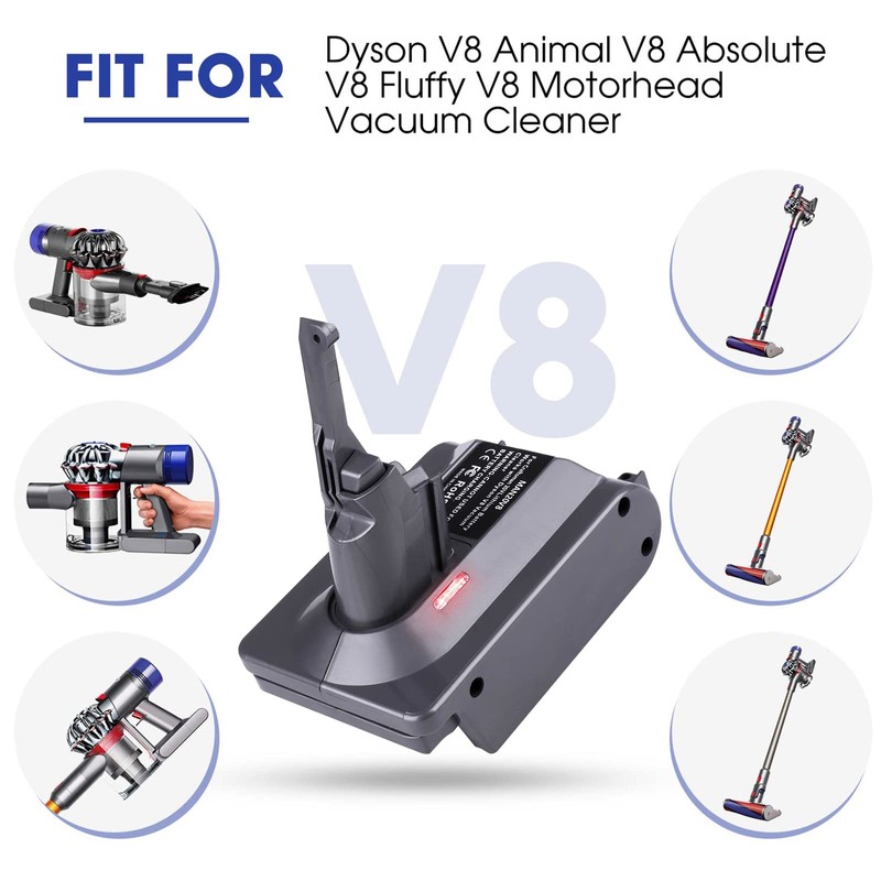 - đăCompatible with Dyson V8 CleanerăSupports for Dyson V8 Absolute, Animal, Fluffy Vacuum, Motorhead, Hand-held Series Vacuum Cleaner, V8 SV10 967834-02 96783402 Vacuum Cleaner, V8 Animal Cordless Stick Vacuum Cleaner.