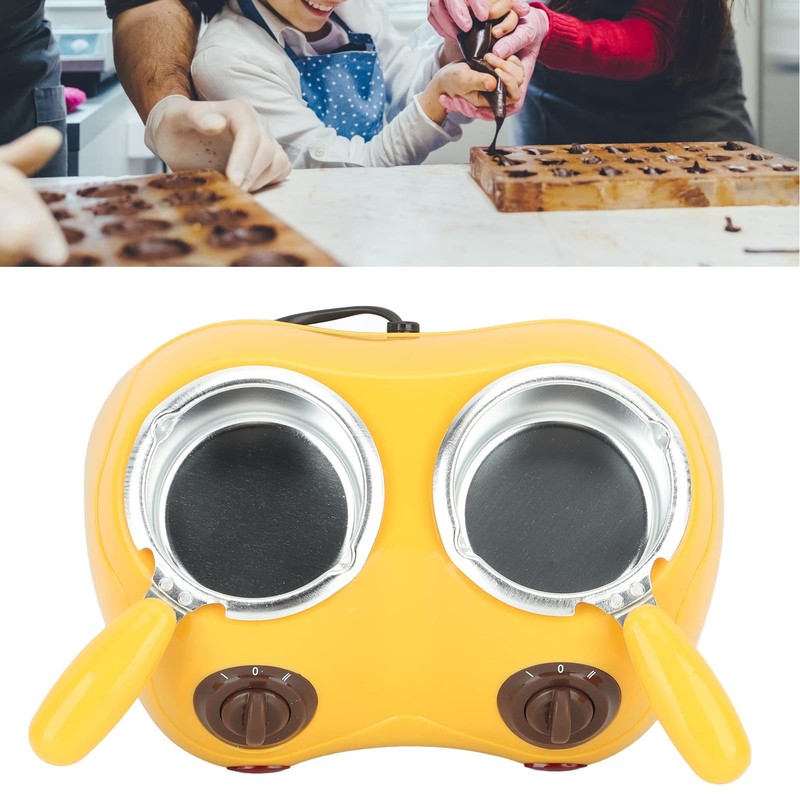 BTSEURY Double Chocolate Melting Pot,Electric Mini Chocolate Fondue Melting Machine Kitchen Tool for Candy Milk Cheese Butter Melting Home (Yellow)