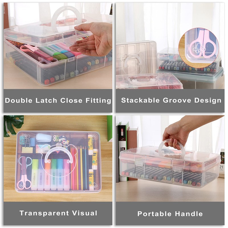 - Premium & Durable Quality: This stationery storage box is made of premium pp material, which is non-toxic and odorless. It is durable and resistant to wear and tear. The sturdy handle and snapping latch make it secure and easy to transport.