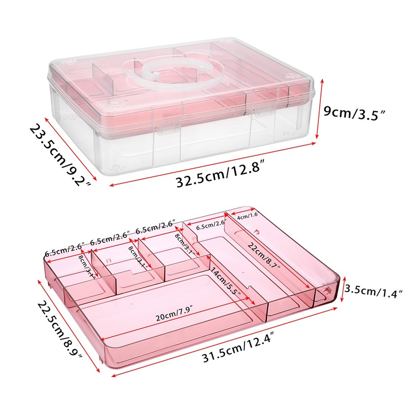 - 2 Layer Muti-grid Design: The whole organizer box has seven compartments, which is conducive to the classification of stationery, art craft and other items. The removable tray has 6 compartments for pens, clips or adhesive tape, etc. Lower drawer without partition can store A4 paper, notebook, sewing supply and more.