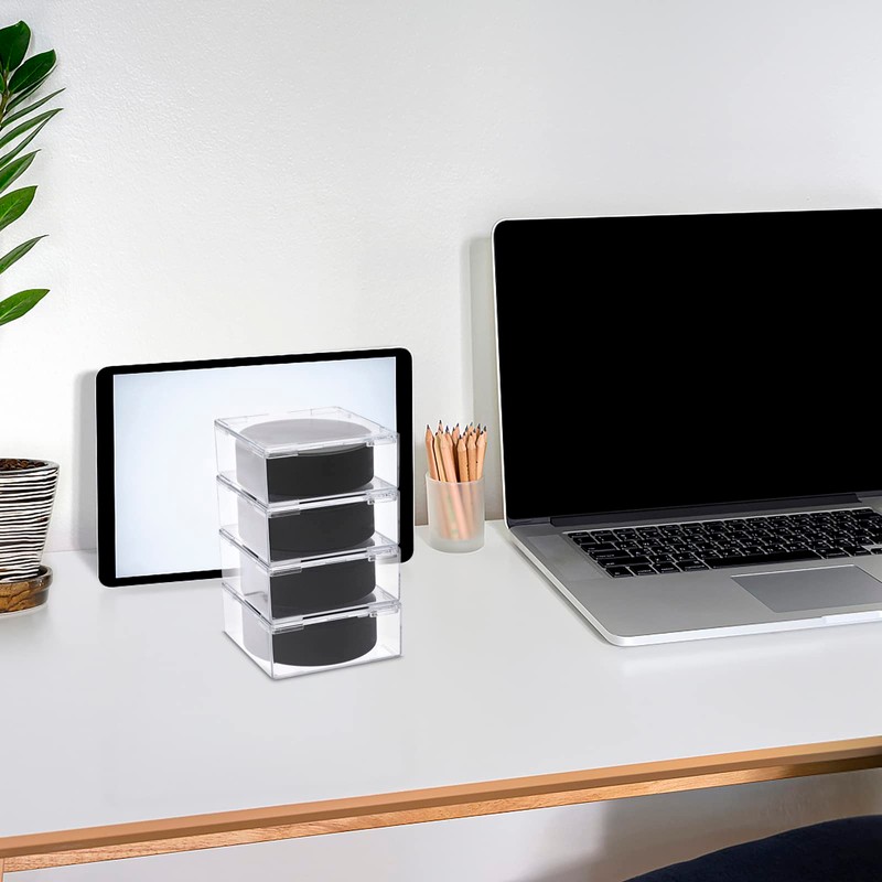 BTSKY 4 Pieces Square Clear Stackable Hockey Puck Holders - Plastic Cube, Ice Hockey Puck Box, Display Case for Memorabilia, Storage Box, Ice Hockey Holder