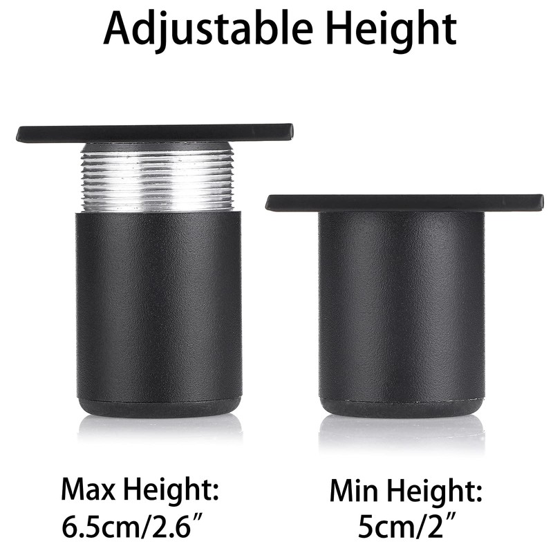 - Practical Design: Round furniture feet with top square installation design will make it assemble on furniture firmly, adjustable pipe allows this table leg to be adjusted from 5cm / 2 inches to 6.5cm / 2.6 inches, and make it stand stably and protect your floor from scratch or damage.