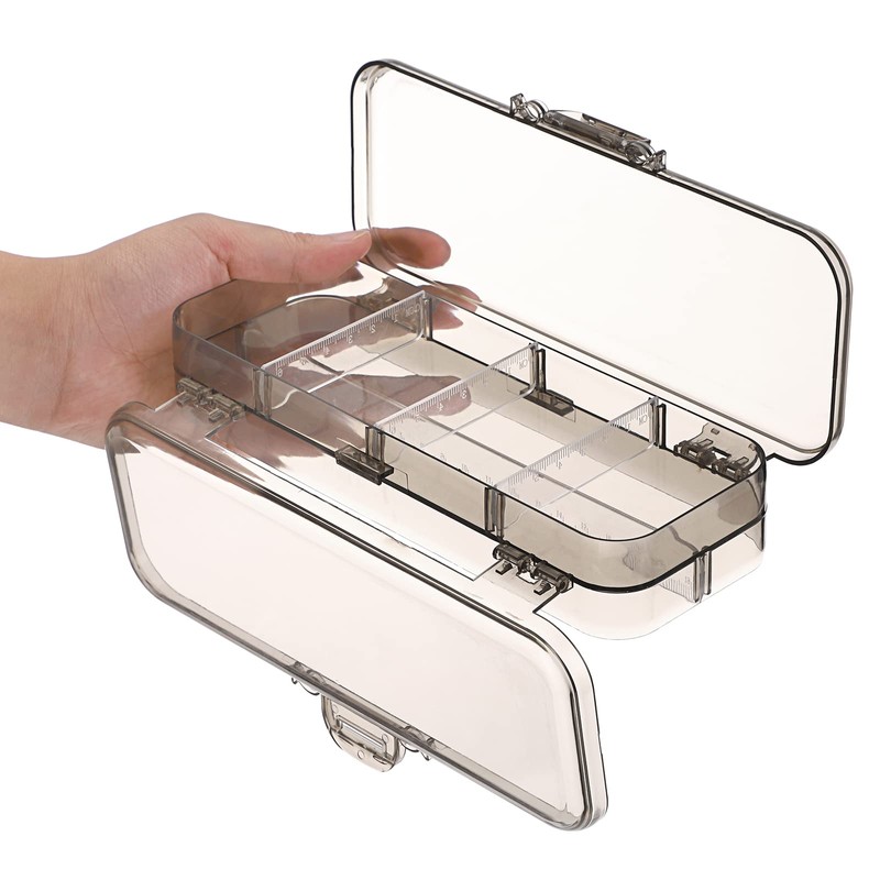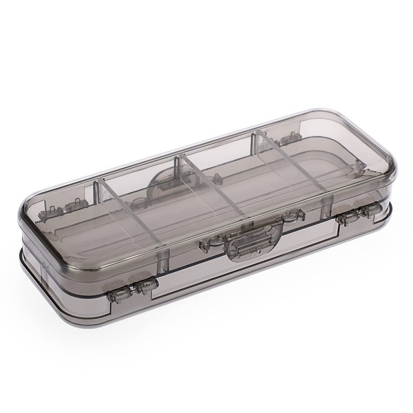 BTSKY Double Deck Pencils Box Clear Plastic Stationery Box with 4 Removable Ruler Dividing Spacers Multi-grid Home Utility Box with 6 Compartments for Pencils Erasers Clips (Clear Black)