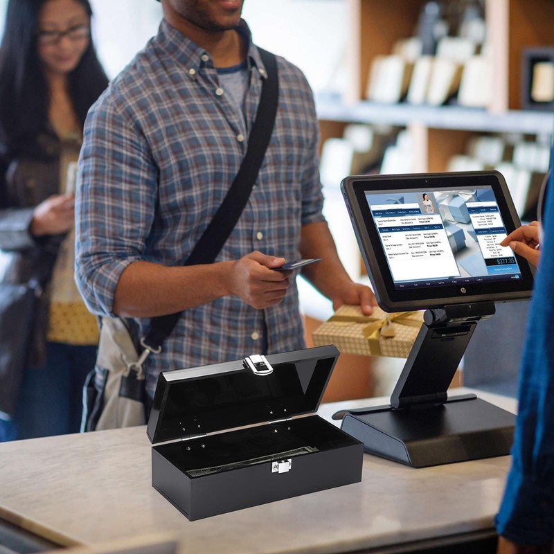 - This small cash box is the perfect supplement for organizing your change. Modern design complements any decoration and helps you organize small items on your desk, reducing clutter.