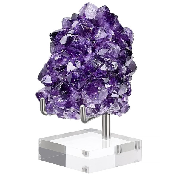 BTSKY Small Size Adjustable Silver Metal Arm Display Stand Easel with Square Acrylic Base, Display Holder for Geodes Rock Mineral Agate Fossil Coral Coin