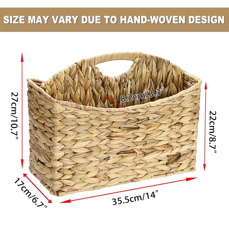 - Natural Water Hyacinth Holder Magazine Woven Basket Decorative Magazine Storage Basket, can be placed in any home space: bedrooms, bathrooms, shelves, sofas, or beneath tables, maximize your space organizing and organizing your belongings.