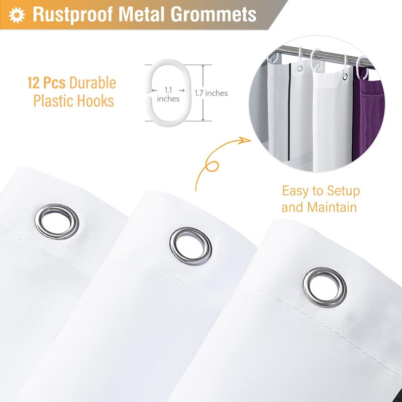 - đăWater Repellent & Protect Privacyă: Using 4-layer water repellent process coating fabric, which can promote the formation of water droplets, causing water to roll off the surface quickly. This shower curtain provides excellent privacy while allowing natural light to filter through. It features a non-see-through design that ensures your privacy is protected.