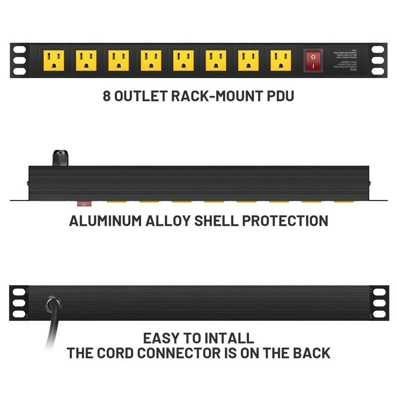 - 【Rack Mount Power Strip】: This PDU power strip surge protector equipped 8 wide space outlets (125V/15A), providing enough space between the sockets to large plugs. 8 in 1 power strip, features a 6 ft long cord so you can plug your devices in while leaving the rack mobile