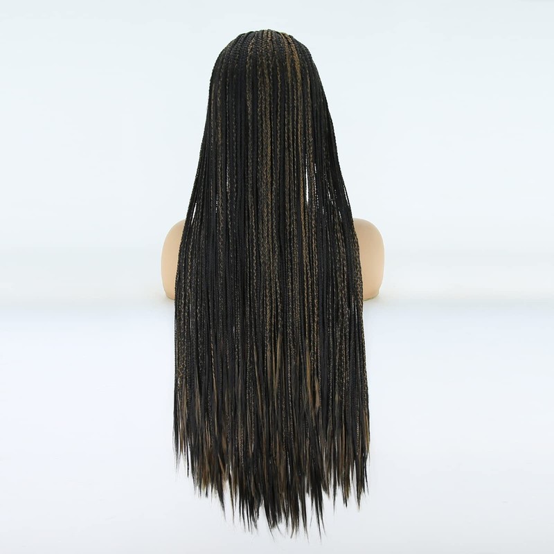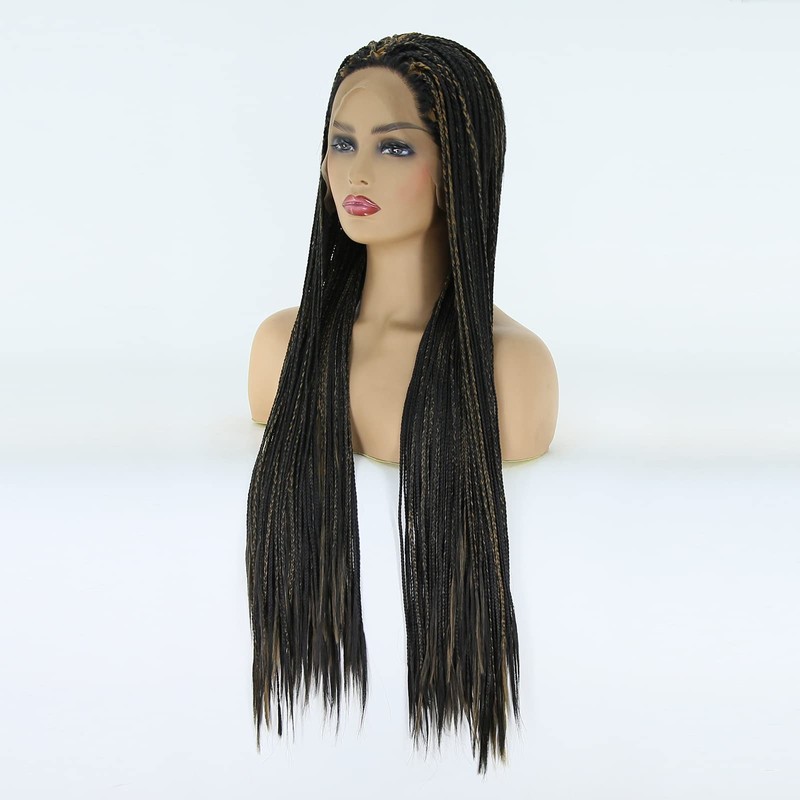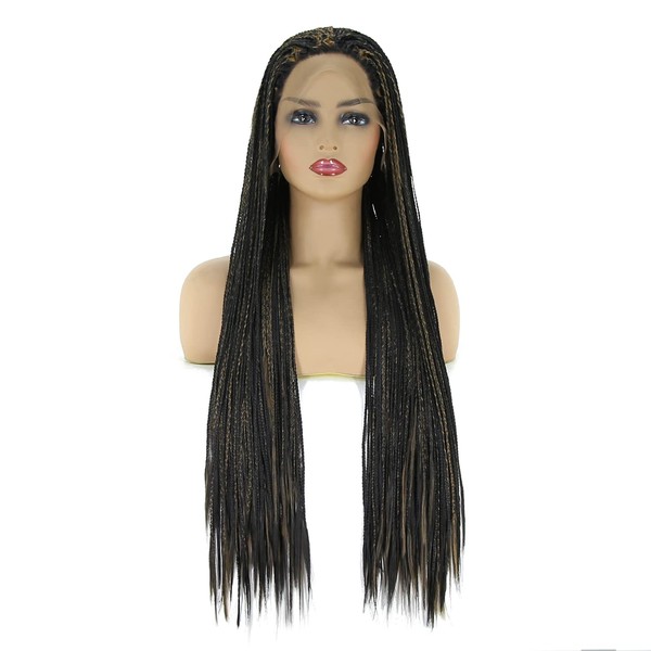 BTWTRY Synthetic Lace Front Wigs for Black Women Black Highlight #30 Color Heat Resistant Fiber Hair Micro Braided Hair Box Braids Wig (24inch, 1B Highlight #30)