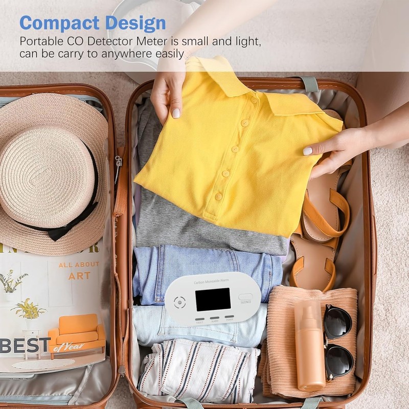 - Compact Design: This portable carbon monoxide detector is small and light, can be carry to anywhere easily, size is 4.13X2.16X2.16 in and weight is 2.82oz.