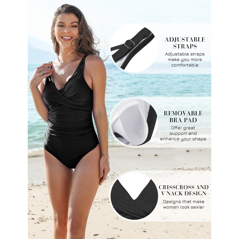 - 【Fashion Swimsuit】 This one-piece swimsuit features a V-neck design that is elegant with a hint of sensuality. The straps are adjustable with hook and loop closure, allowing you to find the best elasticity and length for you and have the most comfortable wearing experience. Low back design shows off your curves and charm. Removable padded bra provides full support and gives you the freedom of choice to change. Criss-cross front enhances the design while effectively hiding empty cups.