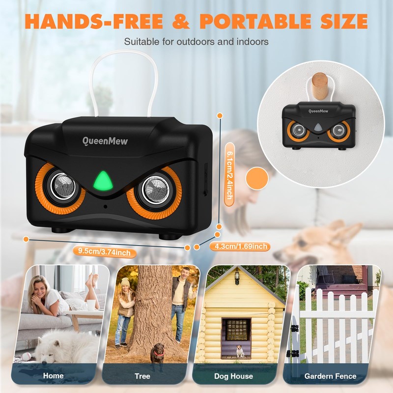 - Mini but a lot of powerful: size: 3.74 x 2.4 x 1.69 inches. With its super cute owl design, this stopper can also be used as a pretty little pendant! Our portable anti-bell helps you control your dogs at a distance of 15 m (50 feet) and thus maintain peace of mind in your home. You can hang it on a wall, fence, window or wherever you like!
