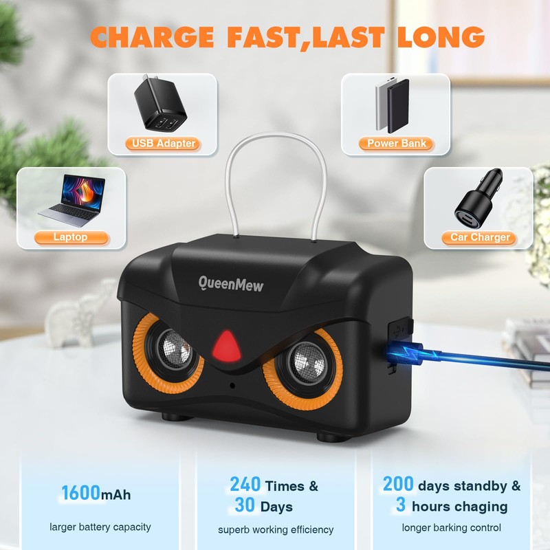 - Rechargeable and long lasting: our anti-barking device is equipped with a built-in powerful battery that supports charging via USB cable. 3 hours full charge can continuously work for over 30 days, with 240 actions per day. Note: the output current is no more than 2A. The red light is on when charging and the green light is on when fully charged.