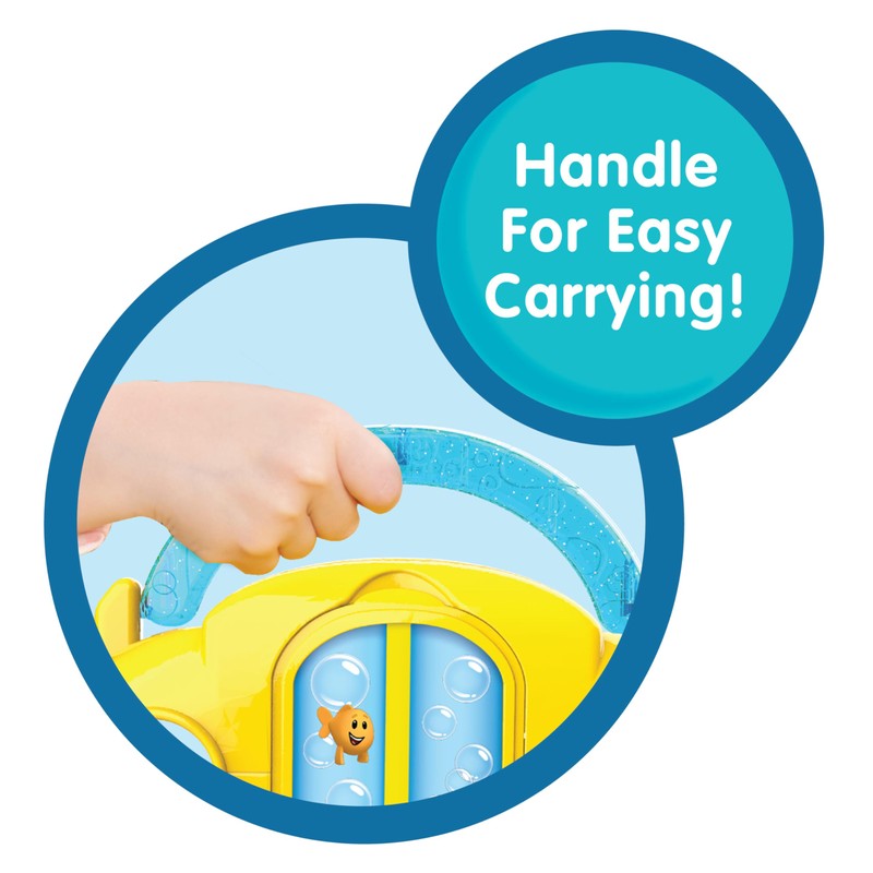 What time is it? It's time for school with the Bubble Guppies Swim-sational School Bus! The Bubble Guppies Swim-sational School Bus comes with one Gil figure, one Mr. Grouper figure and one bus stop sign! Gil's tail moves back and forth to look like he's swimming! The bus is the perfect size for little hands to maneuver! Kids can use the Swim-sational School Bus to store their fish-tailed friends and take them on new adventures! The bus's fin moves back and forth as it rolls! The bus can fit the Bubble Guppies inside and features a built-in handle for easy transport. Perfect for playing out adventures from the show.