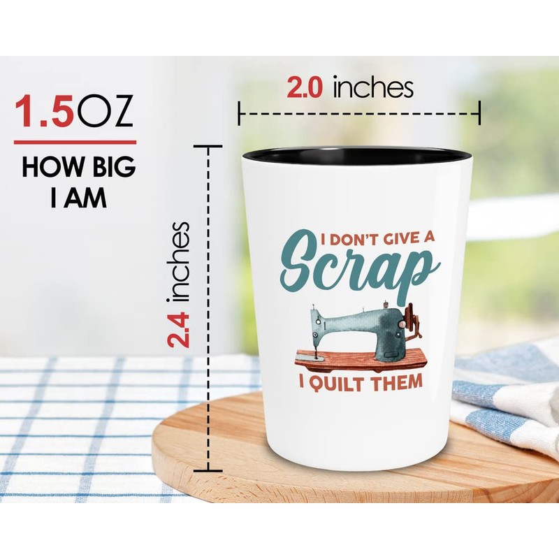 Bubble Hugs Sewing Shot Glass 1.5oz - I Don't Give A Scrap - Craft Knitting Lace Creative Stitching Textile Arts Needle Thread Patterns Clothes