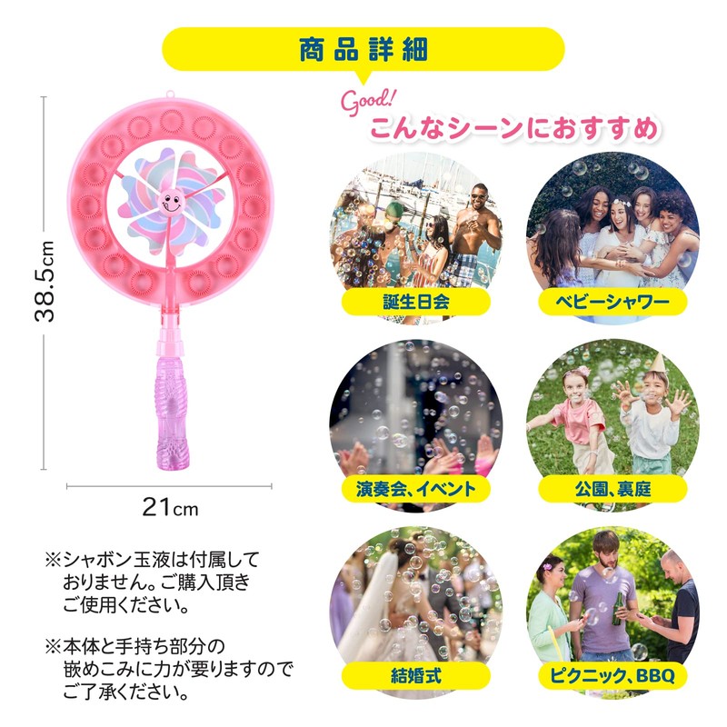 - Bubble solution not included. Please use it when you buy it