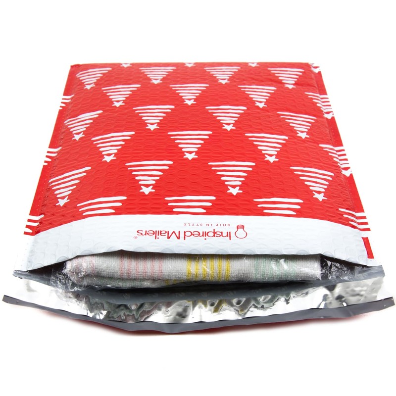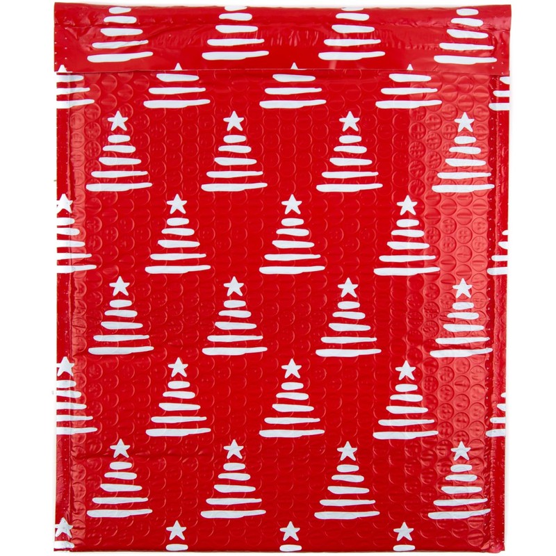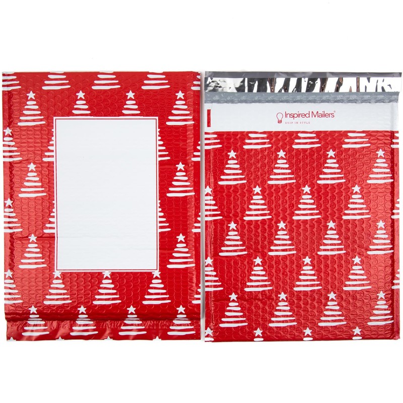 Bubble Mailers 10x13" - Red Christmas Trees (Writable Area) - 25 Pack - Holiday Padded Envelopes 10x13 - Poly Bubble Mailers Padded Mailers - Bubble Envelopes 10x13