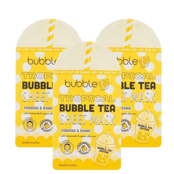 Bubble T Cosmetics Tropical Sheet Mask with Aloe Vera, Niacinamide and Berry Extract, All Skin Types 3-Pack