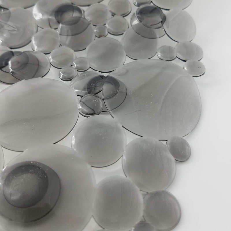 • COLOR & DESIGN: This oval bathtub mat is a neutral clear gray and made up of hundreds of bubbles of different sizes,