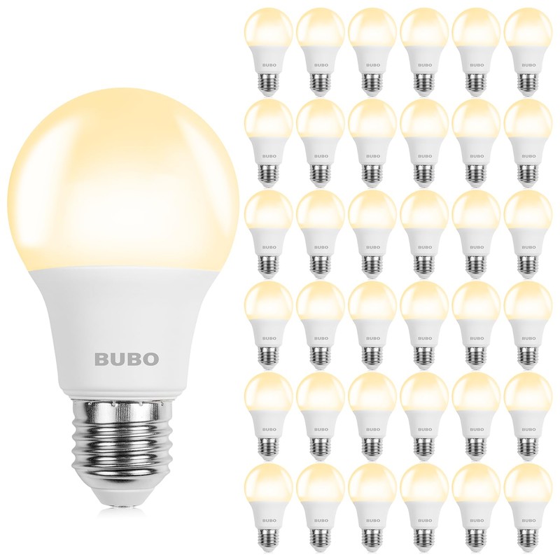 BUBO A19 LED Light Bulbs, 60 Watt Equivalent LED Bulbs, Soft White 2700K, 800 Lumens, E26 Standard Base, Non-Dimmable, 8W Soft White LED Bulbs for Bedroom Living Room Home Office, 36 Pack