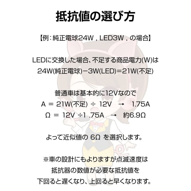- [How to choose resistance value/calculation method] Purchase a calculator from V x A = W Ω V / A. Please refer to the product image for details