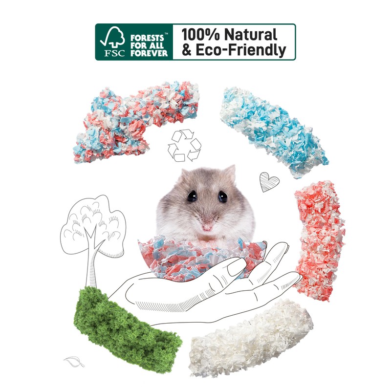 Made from 100% natural materials, our pet paper bedding is both environmentally friendly and safe for your pets. Its threefold expansion capability means you get more value with less product, creating a soft, cushioned, and paw-friendly surface that your pets will love. The bedding's hypoallergenic properties and absence of artificial chemicals guarantee a safe and comfortable nesting area. Choose our pet paper bedding for an eco-conscious, efficient, and cozy solution for your beloved small animals.
