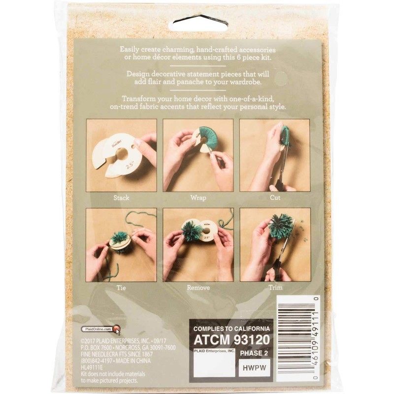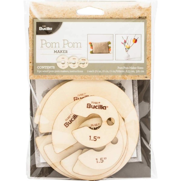 - Set of six durable wood pom-pom makers: two 1. 5" makers, two 2. 5" makers, and two 3. 5" makers