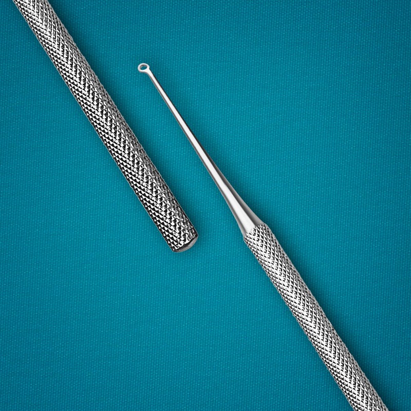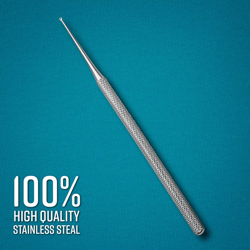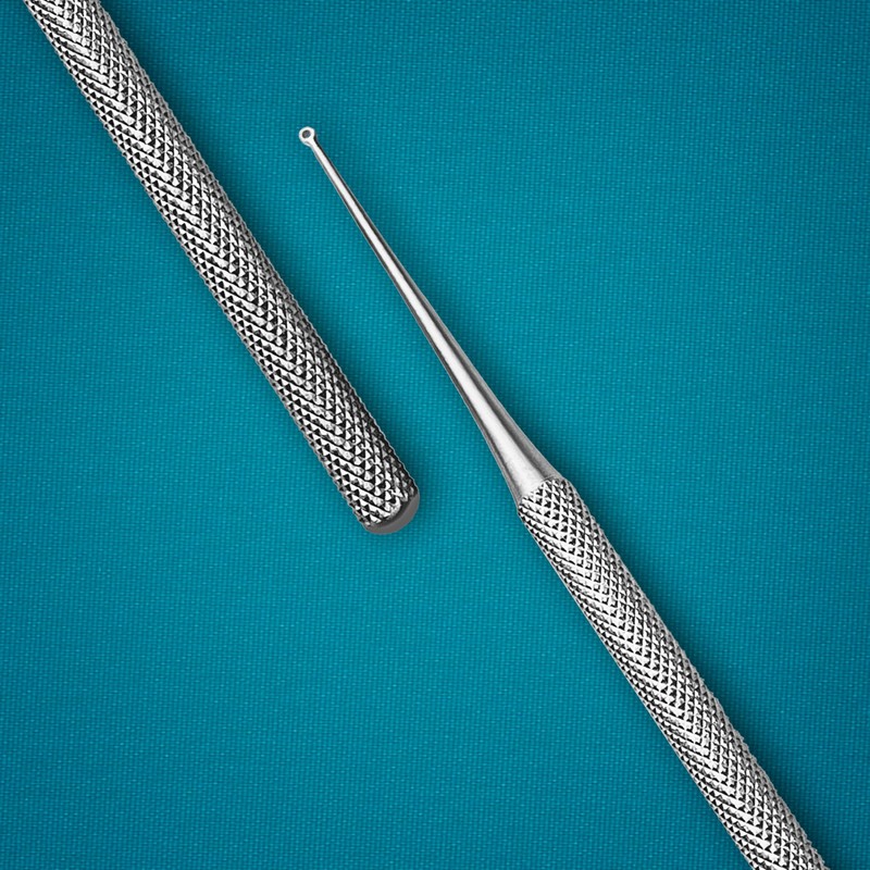 Buck Dermal Ear Wax Remover Cleaning Distel Round Safe Tip with Strong Handle Stainless Steel Precise and Effective Cleaning: Designed for safe and efficient removal of debris, wax, and buildup from the ear canal and outer ear, ensuring thorough cleaning without causing damage. Ergonomic Handle: Features a comfortable, non-slip grip for enhanced control and ease of use during procedures.