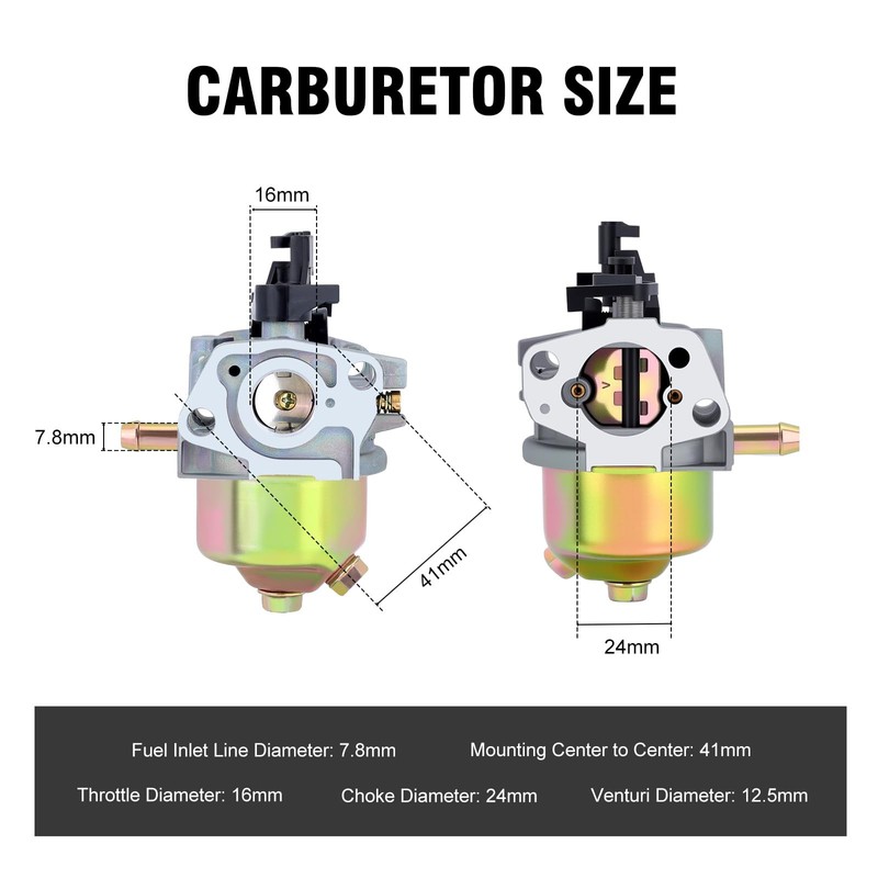 - Package includes 1 carburetor,1 fuel line,3 gaskets,4 camps