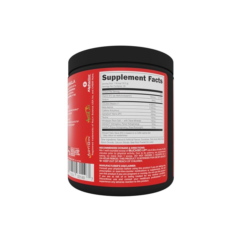 Bucked Up Bucked Up - Woke - HIGH STIM Pre Workout - Best Tasting - Focus Nootropic, Pump, Strength, 30 Servings (Blue Raspberry)