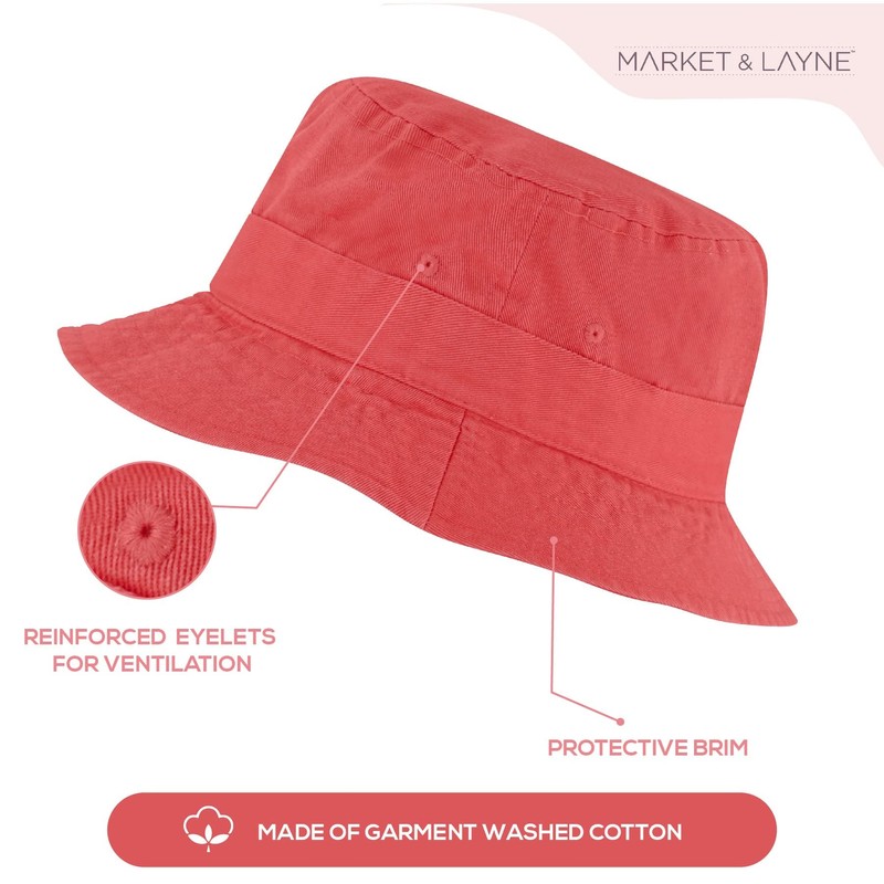 - Material – Market & Layne coral pink bucket hat for women and men is Made out of 100% High Quality Cotton that makes it comfortable and breathable to cool you down through eyelets on the sides, while protecting you from the harmful ultraviolet sun rays.