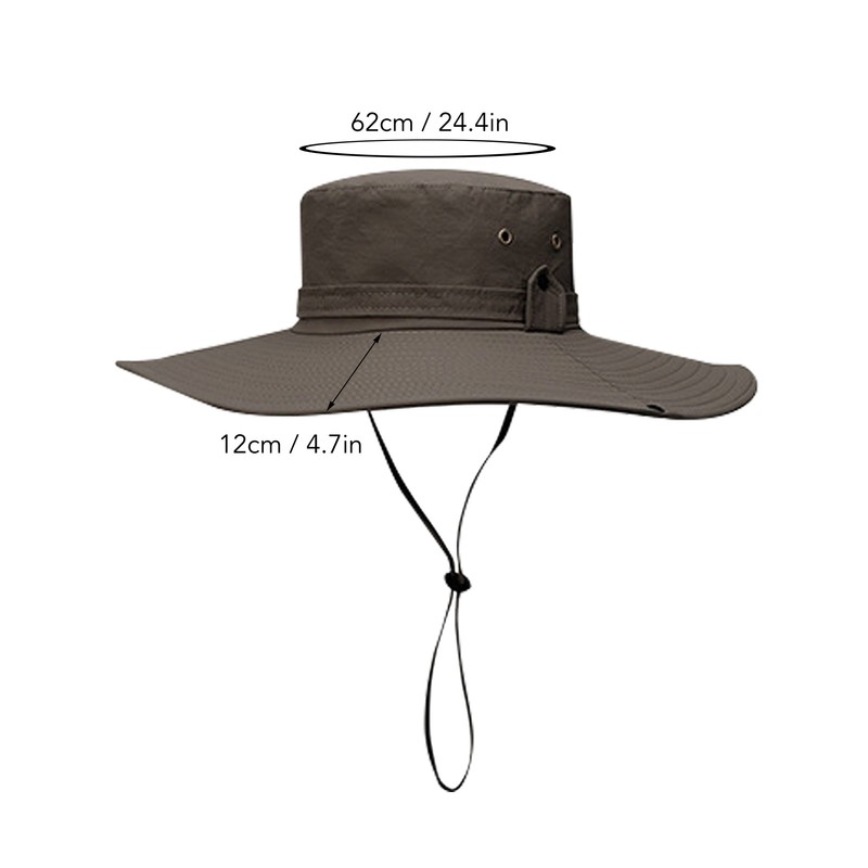1、12CM Large Brim: Designed for outdoor enthusiasts who love exploration and are passionate about outdoor activities such as hiking, and leisure travel, providing excellent sun protection. 2、Effective UV Protection: This hat resist over 98% of UV rays, with a large brim that covers the face, offering constant protection from sunburn during outdoor adventures. 3、Adjustable Buckle Design: Easy to match and durable, this hat features a adjustable buckle design for a customized fit, ensuring it stays securely in place at all times. 4、Waterproof Fabric: Made with a waterproof fabric that creates a water repellent effect, making it more convenient for outdoor exploration. 5、Mesh Lining Design: The interior mesh lining provides comfort and breathability, preventing the hat from feeling stuffy or hot. 6、Windproof Rope: The adjustable windproof rope enhances stability and prevents the hat from being easily lost, allowing for easy and customizable wear for hiking, cycling and other outdoor adventures.