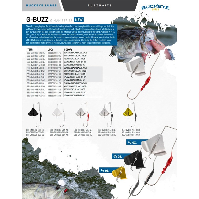 - There is no denying that Gerald Swindle has had a ton of success throughout his career utilizing a buzzbait. Up until now, that was a buzzbait he had built strictly for himself. Thanks to his mutual investment with Buckeye to give our customers the best tools on earth, the infamous G-Buzz is now available to the world.