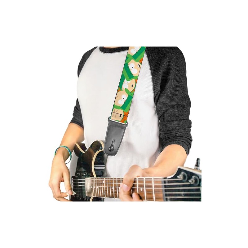 Buckle-Down Comedy Central Guitar Strap, South Park Kyle Expressions Scattered Green, 2 Inches Wide, Green, 2" Wide - 29-54" Length