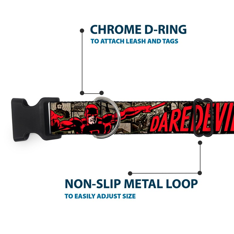 Buckle-Down Daredevil Action Poses/Comic Panels Grays/Red Plastic Clip Collar, 1" x 15-26"/Large