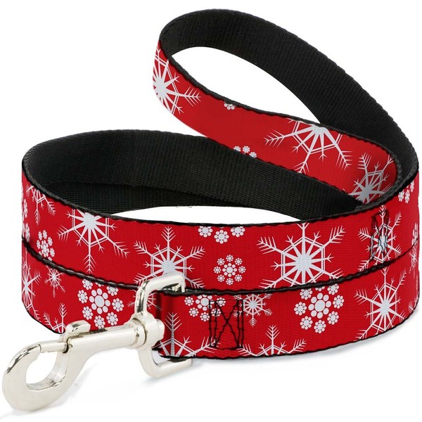 Buckle-Down Dog Leash Snowflakes Red White 6 Feet Long 1.0 Inch Wide