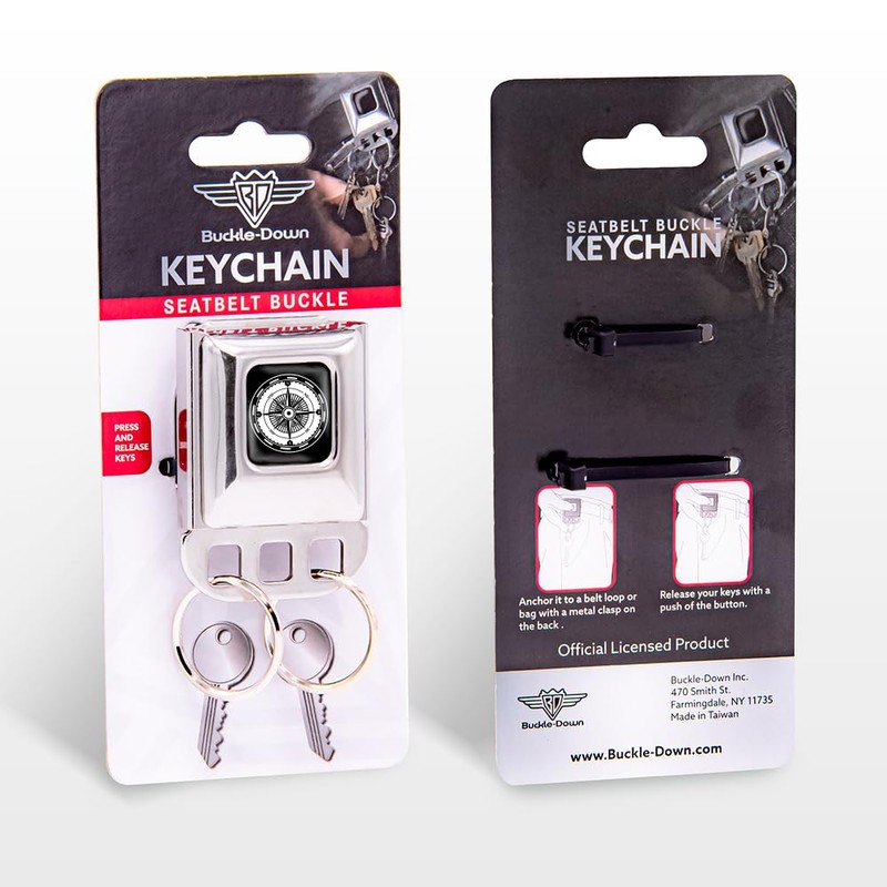 - This nifty keychain is equipped with an authentic SeatBelt Buckle clasp.